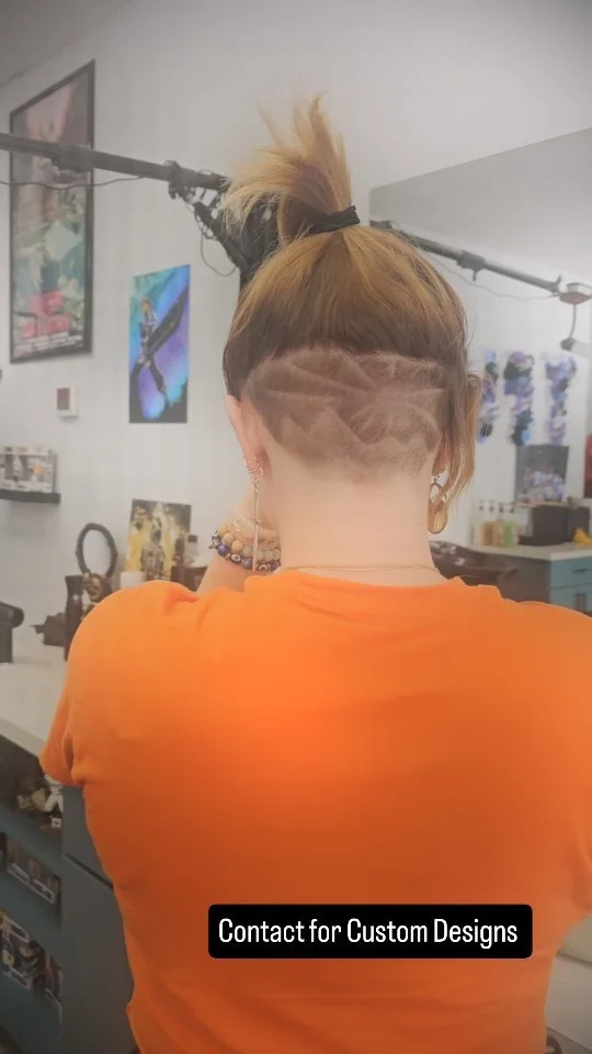I offer custom hair designs ranging from clean, simple patterns to more intricate styles. Each design is priced based on detail and time required.